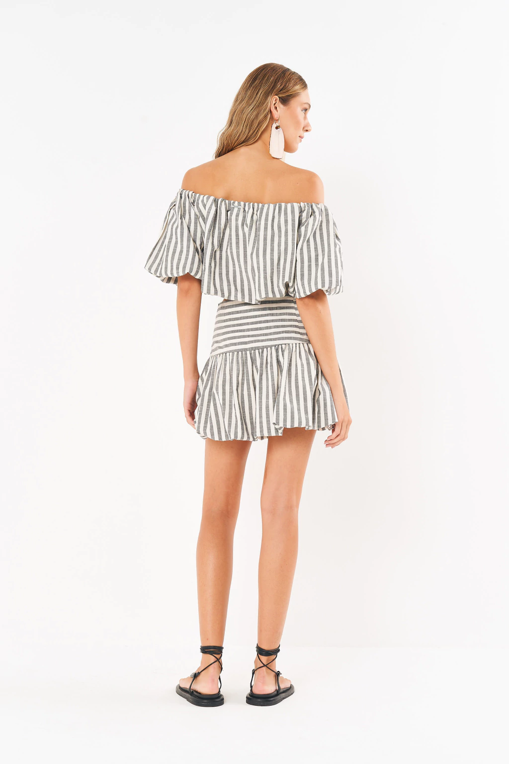 O romance tropical em sua forma mais pura. Esta blusa da coleção Riviera é a celebração da leveza e da energia vibrante da temporada. Com sua estampa listrada em tons neutros, ombros à mostra e um charmoso efeito balonê, ela evoca a atmosfera descontraída e elegante do cenário tropical. É a peça perfeita para desfrutar dos dias ensolarados com estilo e bem-estar, combinando romantismo e um toque fresco e moderno.
