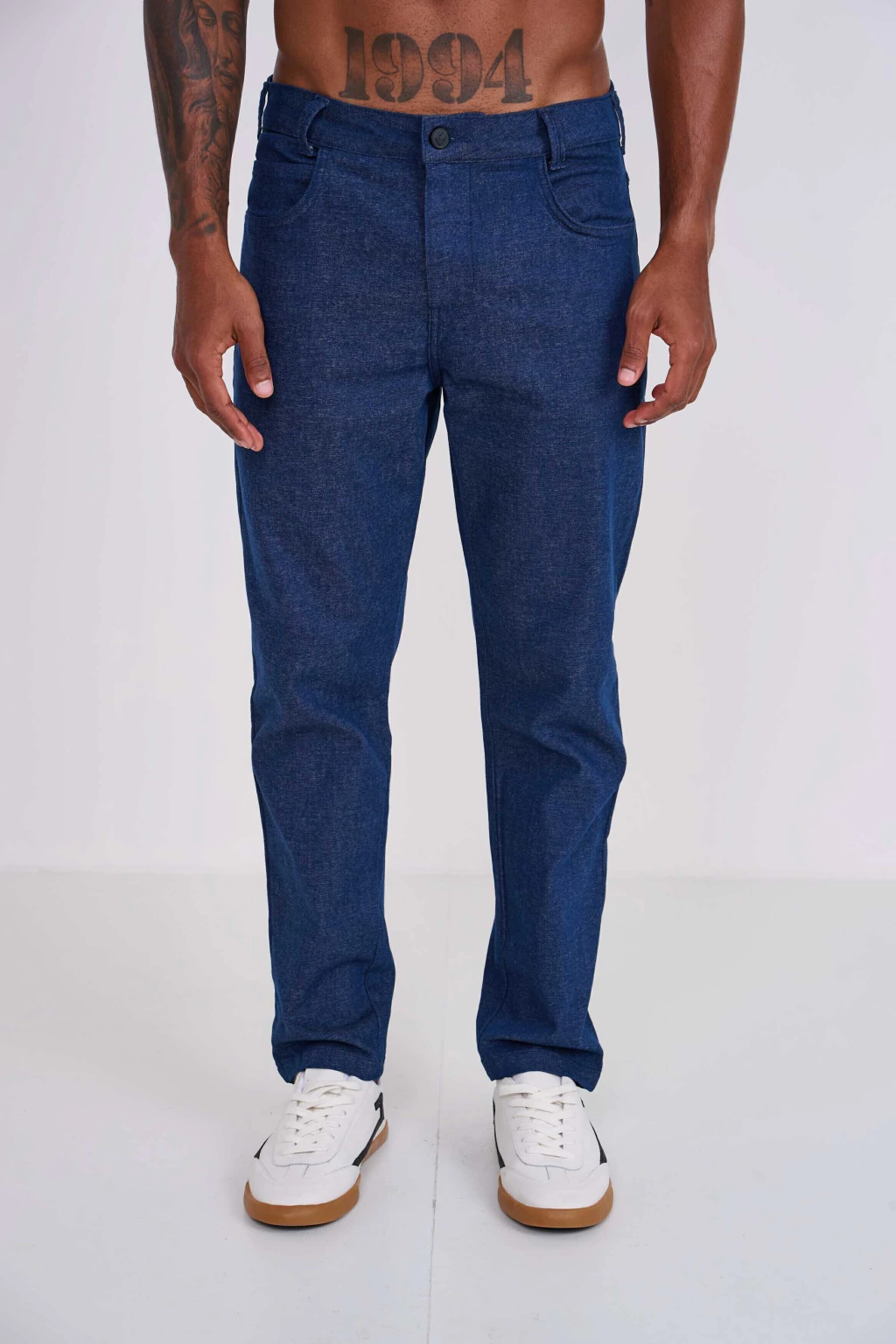 Peça: Calça Em Sarja New Chino. Cor: Azul Marinho/Índigo (uma cor profunda e clássica que remete ao oceano). Tecido: Corpo: 58% Algodão, 41% Poliéster e 1% Elastano, oferecendo uma combinação perfeita de durabilidade, conforto e flexibilidade. Forro: 52% Poliéster e 48% Algodão, garantindo um toque suave na pele. Design: Modelagem slim fit com corte chino, que é um clássico moderno. Possui cós com passantes para cinto, fechamento frontal em zíper e botão, e bolsos faca discretos nas laterais, além de bolsos traseiros embutidos. O caimento é reto, mas com um toque contemporâneo. Detalhes: A sarja de alta qualidade e o acabamento impecável são a assinatura de estilo da COLCCI. Funcionalidade: Confortável e durável, esta calça é perfeita para compor looks casuais ou mais arrumados, oferecendo praticidade e um visual sofisticado para diversas ocasiões do verão.