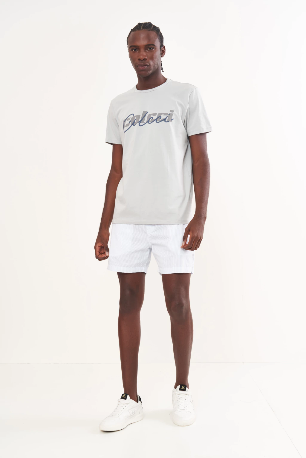 Detalhes: Estampa frontal com o logo COLCCI em efeito sobreposto e tons de azul e cinza, adicionando um toque de dinamismo e exclusividade ao visual.