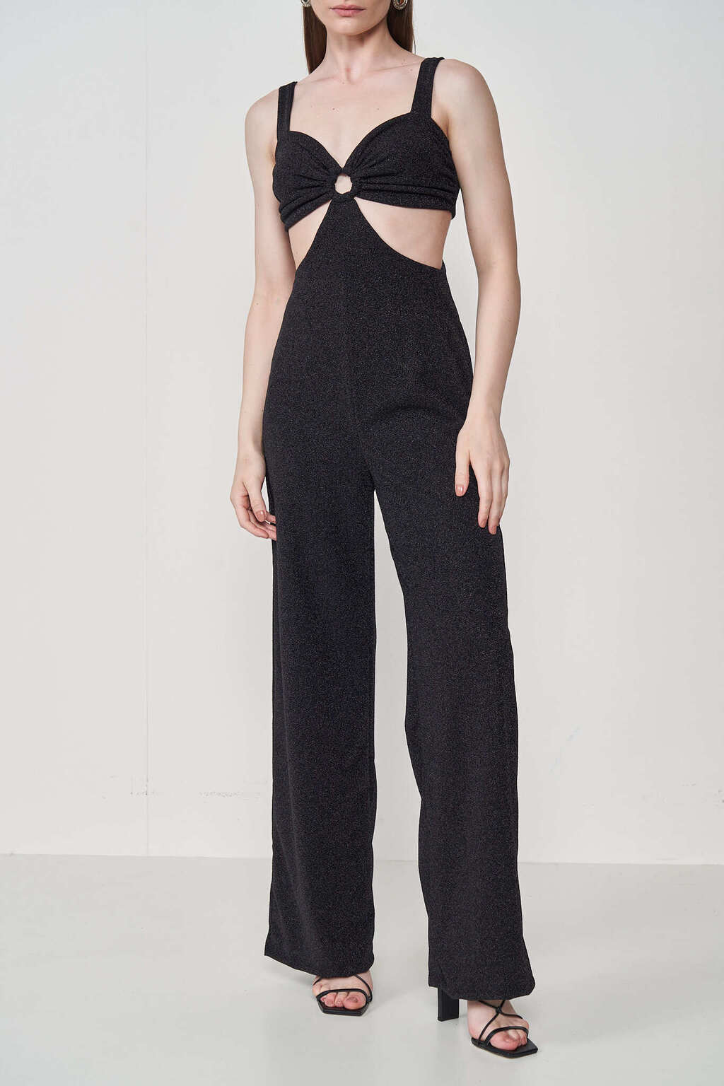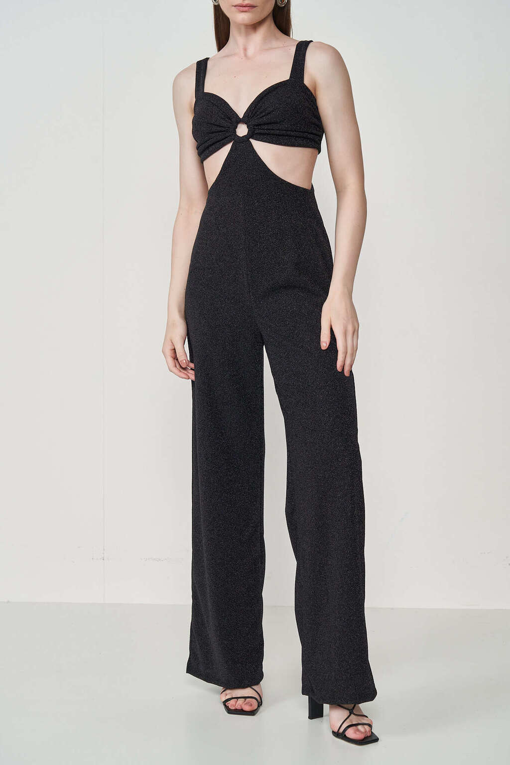 Apresentamos o Macacão Slim Cut Out Naomi Metalizado, uma peça statement para mulheres que amam brilhar com atitude.
