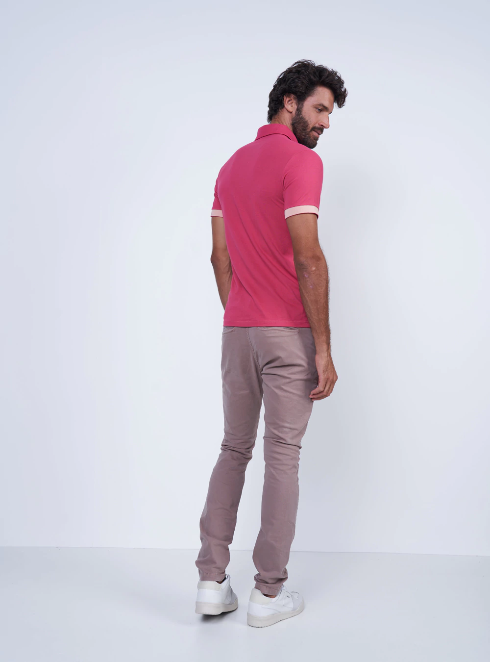 A camisa apresenta shape reto e modelagem Slim. A peça possui gola polo e mangas curtas.Para um visual mais casual, uma calça jeans é uma ótima escolha, ideal para ocasiões descontraídas e passeios no dia a dia. Já para uma proposta mais elegante e sofisticada, a camisa pode ser combinada com uma calça de alfaiataria, adicionando um toque de classe ao look.