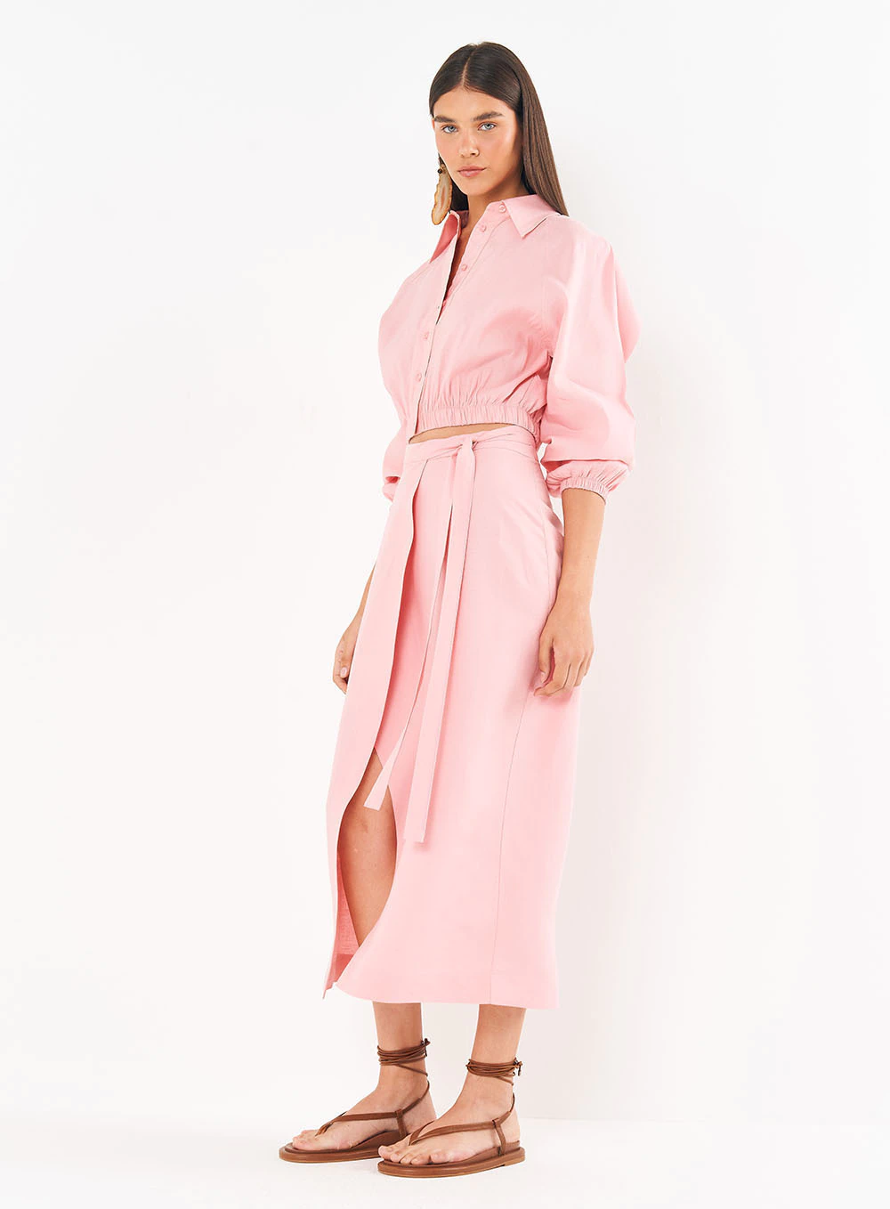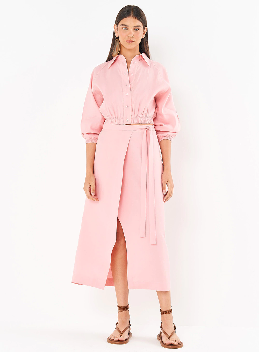 Peça/Look: Saia Linho Midi Com Transpasse e Amarração – RIVIERA